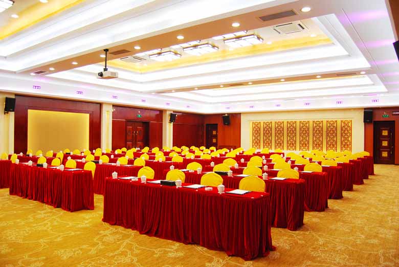 新銀盞大型多功能會議室,位于會議中心中間位置,面積400平方米,可同時容納300余人。大會議中心設有半圓形舞臺約40平方米、舞臺背景板9.2米寬*3.2米高、LED橫幅11米*0.5米、投影幕布300寸。會議室免費提供茶水、紙筆、無線wife、投影儀、投影幕、音響設備、移動白板、白板筆、無線麥、講臺、簽到臺等等。會場裝修時尚簡約、環(huán)境幽靜、設施齊全,能夠滿足各種公司年會,會議,培訓,演出,演講等不同的需求。
