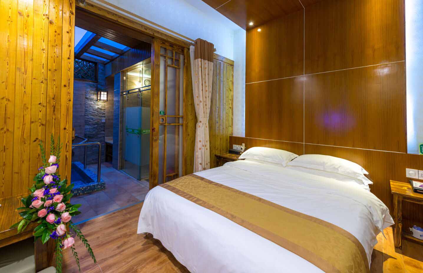 東區(qū)別墅是新銀盞最具特色的住房,位于溫泉區(qū)內(nèi)。這些別墅的外觀設(shè)計富有創(chuàng)意。同時這些別墅建筑均與周邊的景觀完美融合,呈現(xiàn)出生態(tài)建筑的自然之美和別墅外觀。別墅的房型有多種選擇房型分別有:蜜月房、豪華雙人房、豪華兩房一廳、復(fù)式兩房一廳、豪華一房一廳、豪華親子房。東區(qū)所有客房房型房間都帶室內(nèi)溫泉池,房間內(nèi)配備空調(diào)、書桌、電話、液晶電視、房內(nèi)保險箱、洗刷用品、淋浴設(shè)施,吹風機、免費瓶裝水、免費WiFi等設(shè)施,房間內(nèi)還配備特色小食和飲料(有償食用)住房包含了露天無限次溫泉門票和自助早餐,健身房、水療SPA、羽毛球、乒乓球、臺球等,無限量免費提供飲料,水果。溫泉總的有60幾個露天溫泉池。其中有養(yǎng)生區(qū)(如茉莉花池、人參池、牛奶池、酒池等)、水療SPA按摩區(qū)、高溫池等等特色溫泉池。因東區(qū)房型較多,房間內(nèi)部結(jié)構(gòu)不同,如需詳細了解請在線咨詢哦。